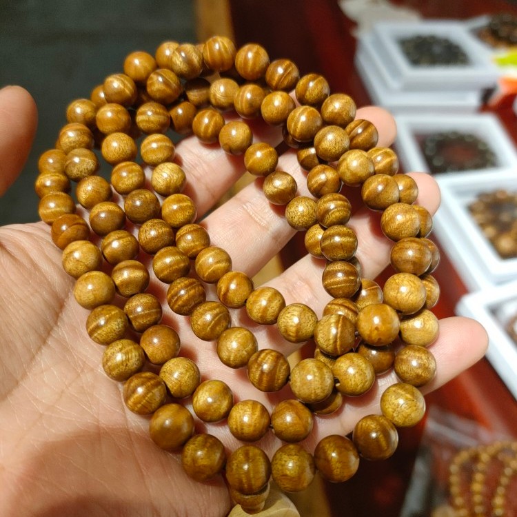 Sichuan small leaf golden nanmu bracelet 108X0.8 solid wood ebony bracelet